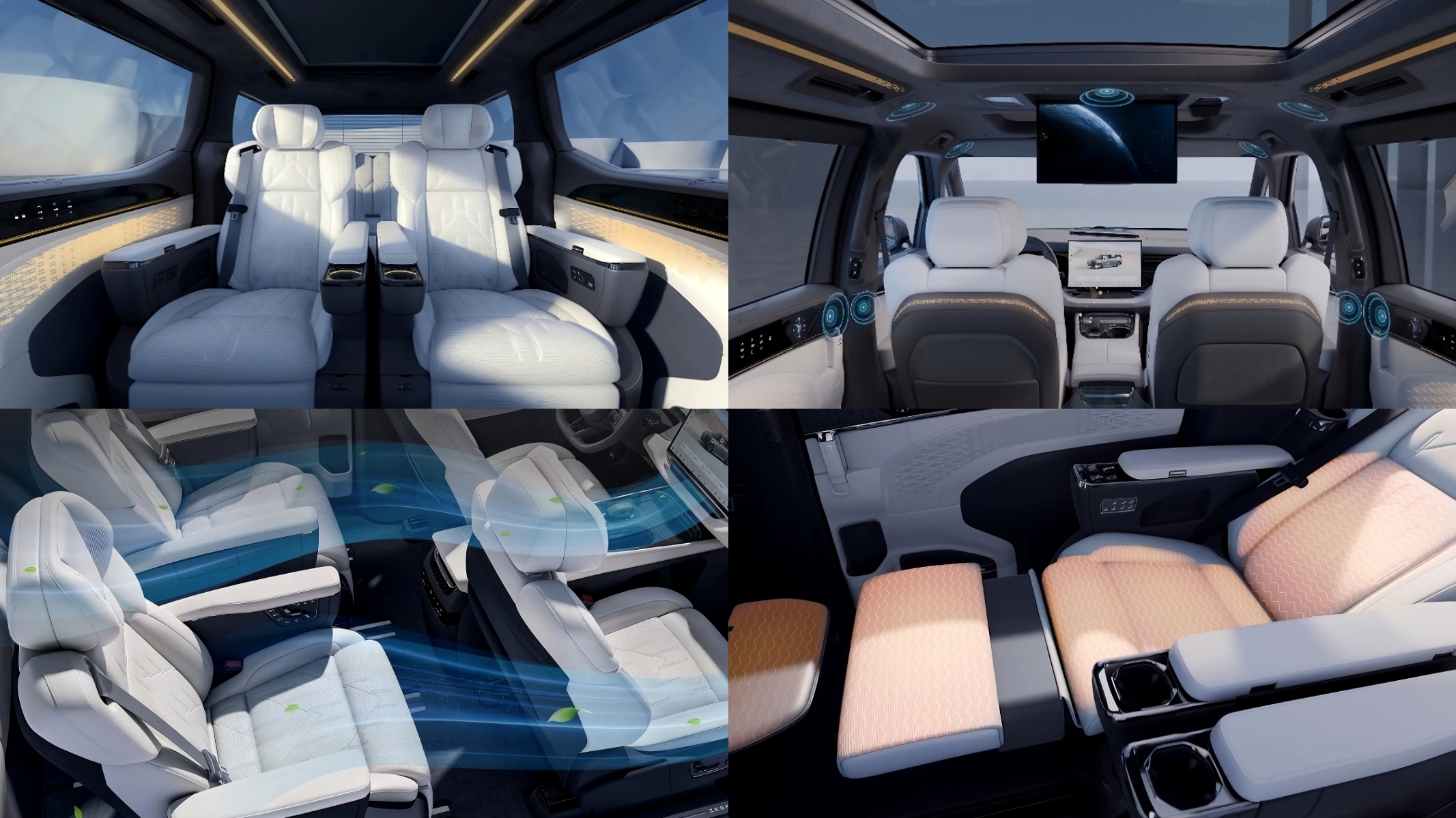 The second-row seats feature electrically adjustable seating, leg rests, as well as heating, ventilation, and massage functions, ensuring exceptional comfort for all passengers.