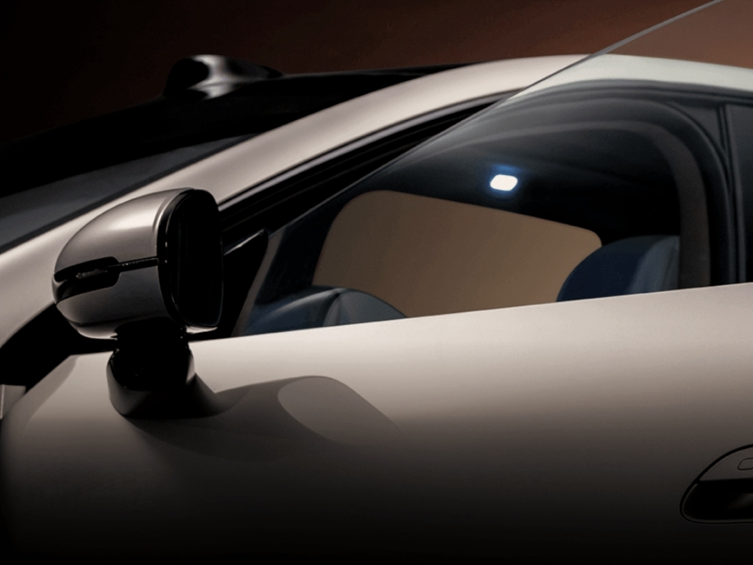 Frameless mirrors & doors, coupe-like fastback profile