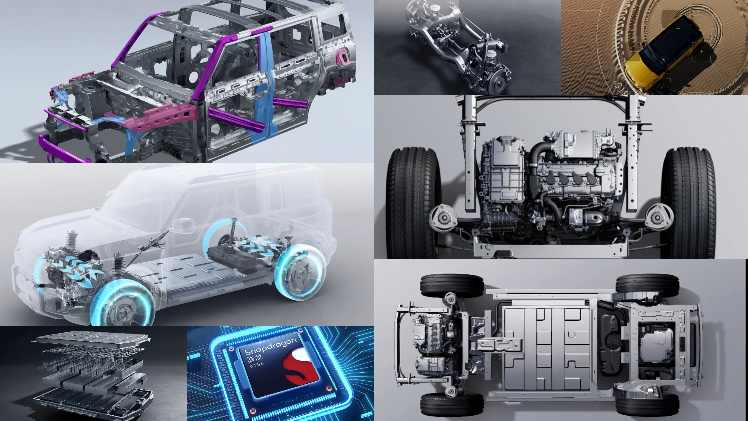 Interior & TechMinimalist cabin with 15.6-inch 2.5K screen, Qualcomm 8155 chip, full LCD cluster. Standard features include tire pressure –display & auto-hold; higher trims add FSD adaptive damping and Falcon 500 intelligent driving with 300+ parking assist scenarios.