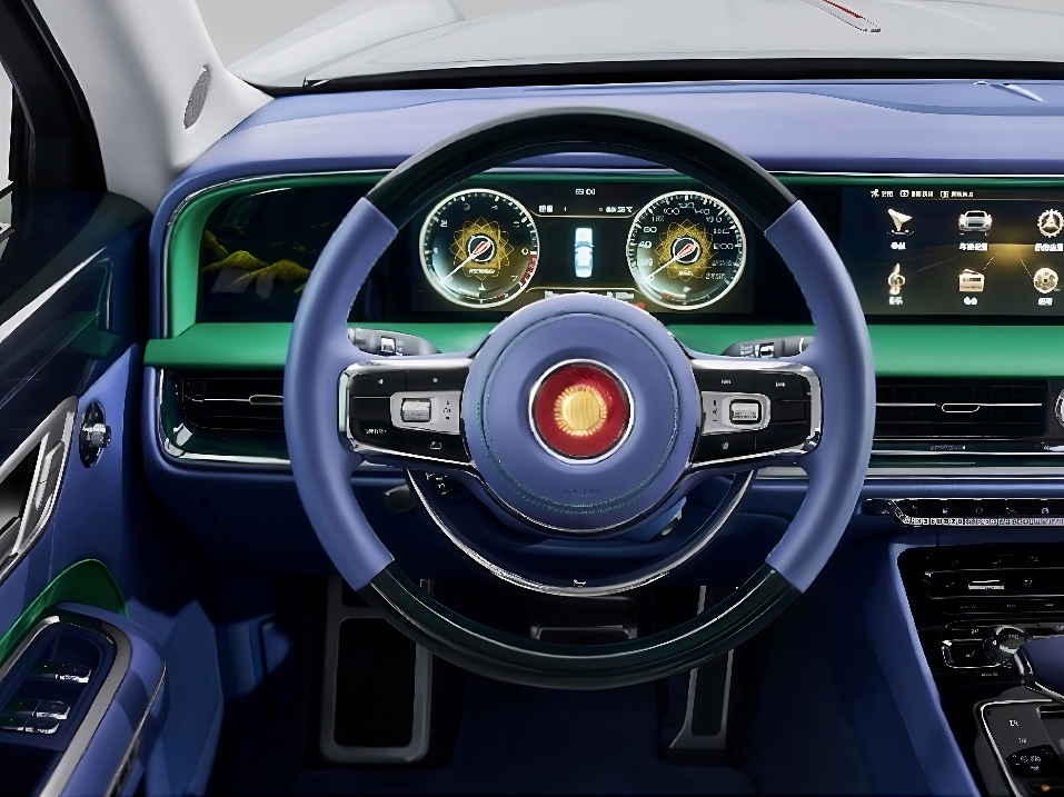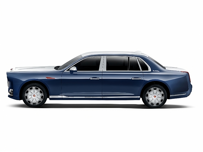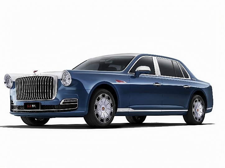 Iconic round headlamps and an enlarged vertical-bar grille exude authority, paired with the latest Hongqi emblem.