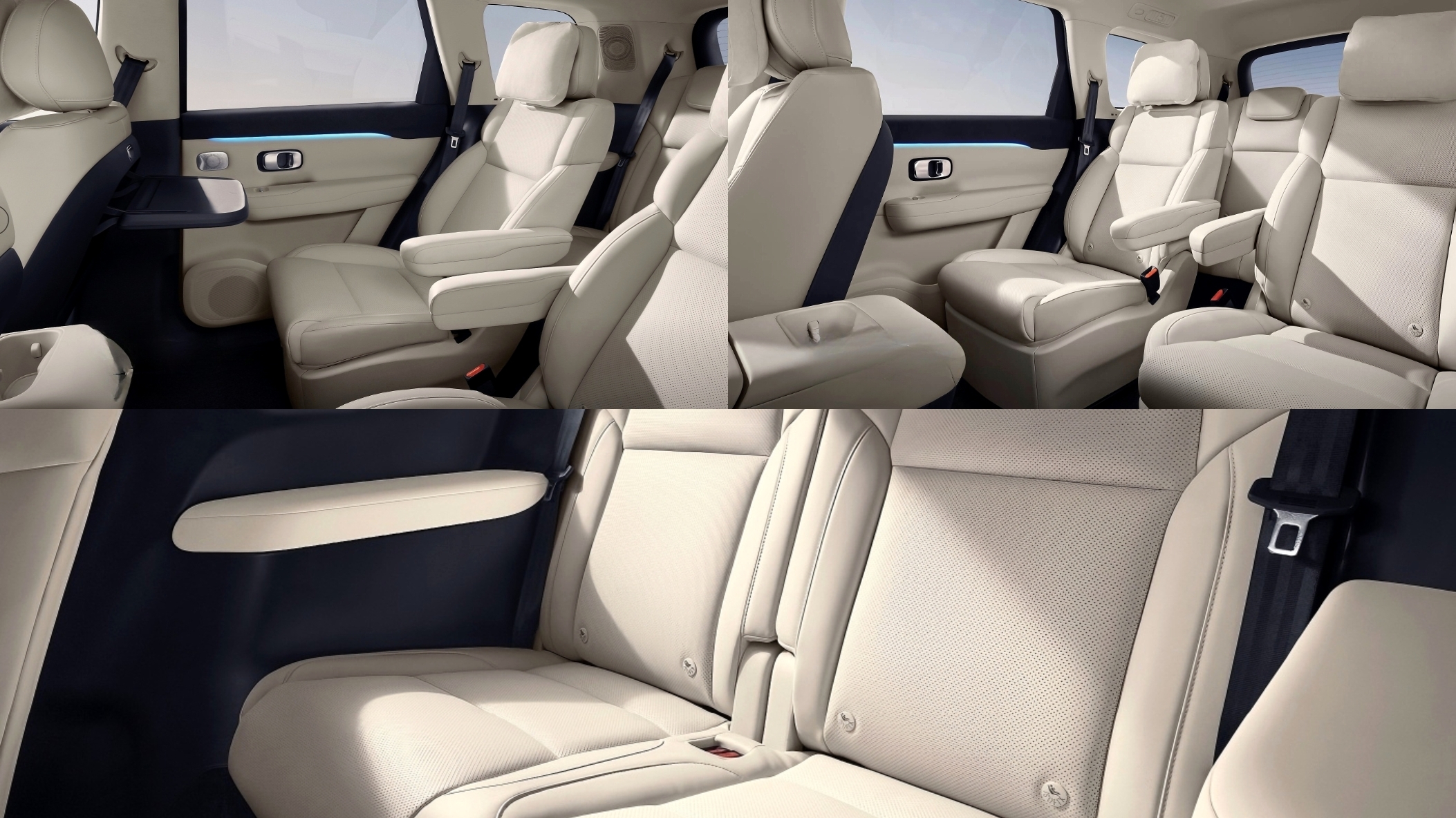 Second-row seats recline up to 145° with heating, ventilation, and fold-out tables