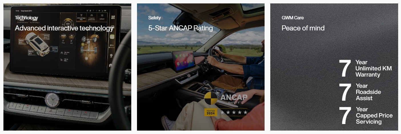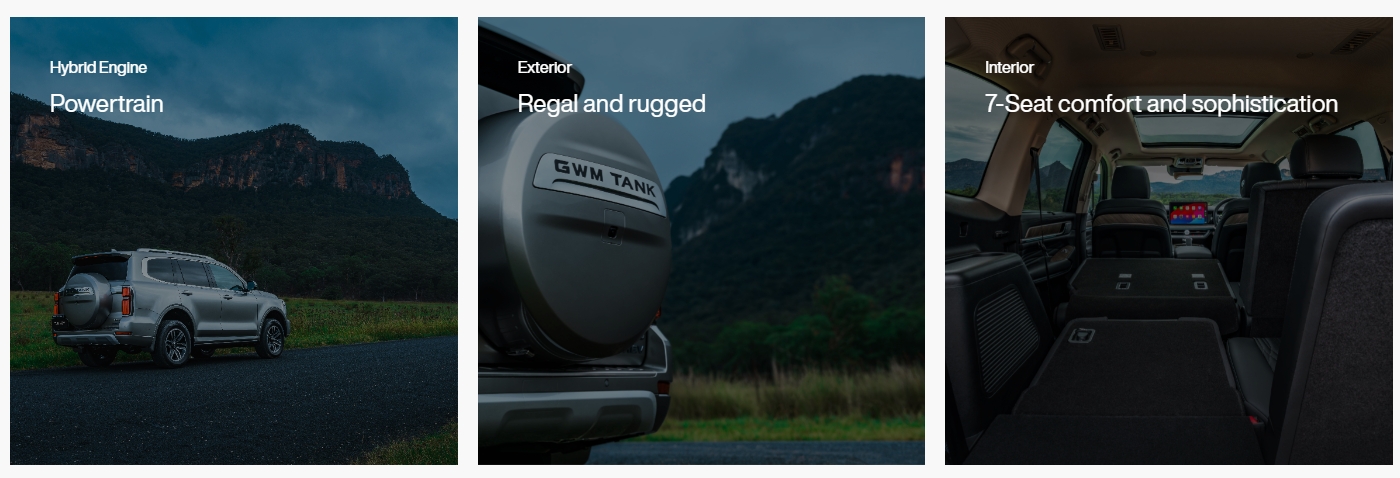 GWM Tank 500 SUV Car L&W&H:5070x1934x1905 mm Wheelbase:2850 mm Motor:E30Z Power:265 Kw,500Nm Engine Capacity:2993 ml