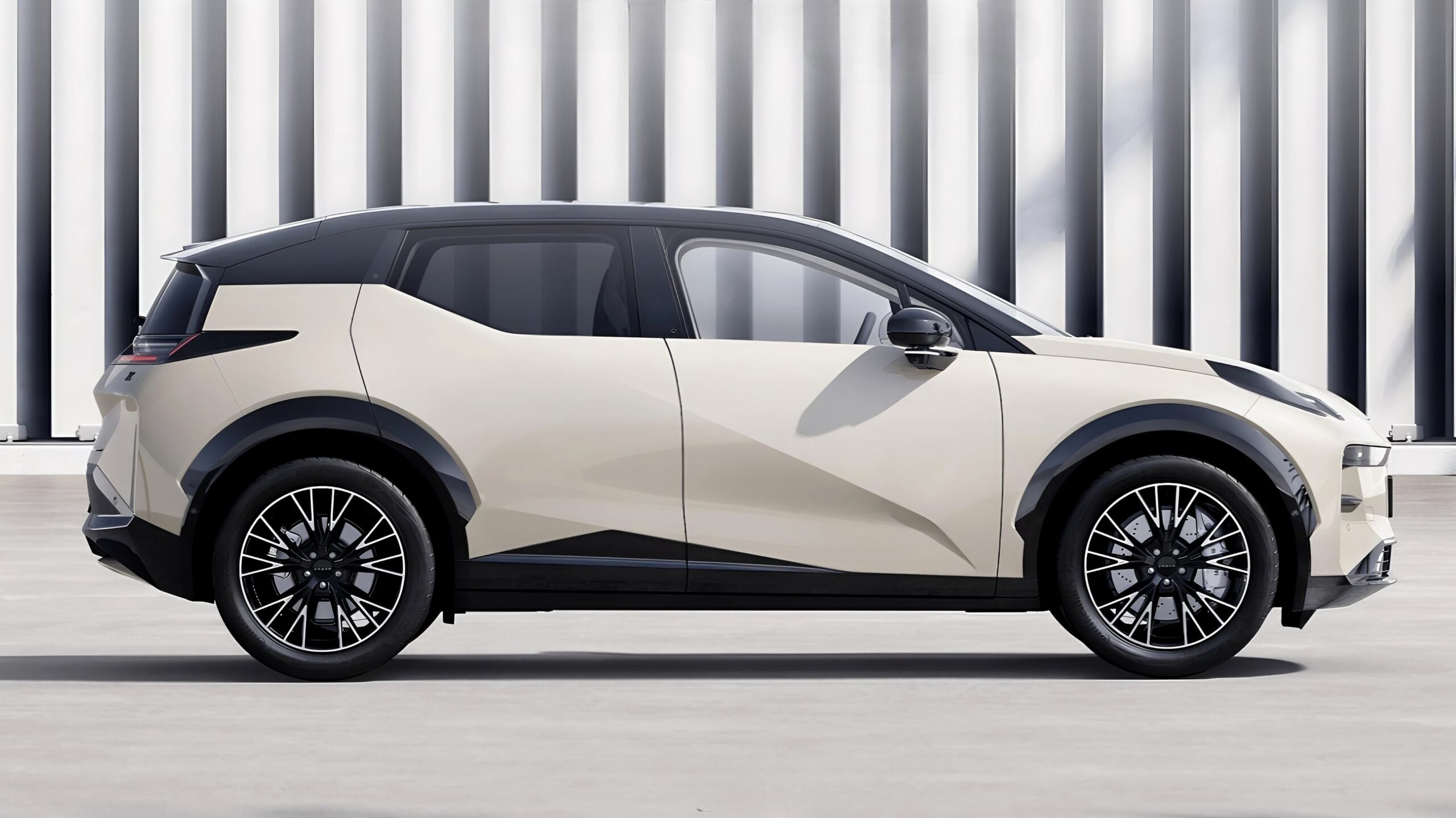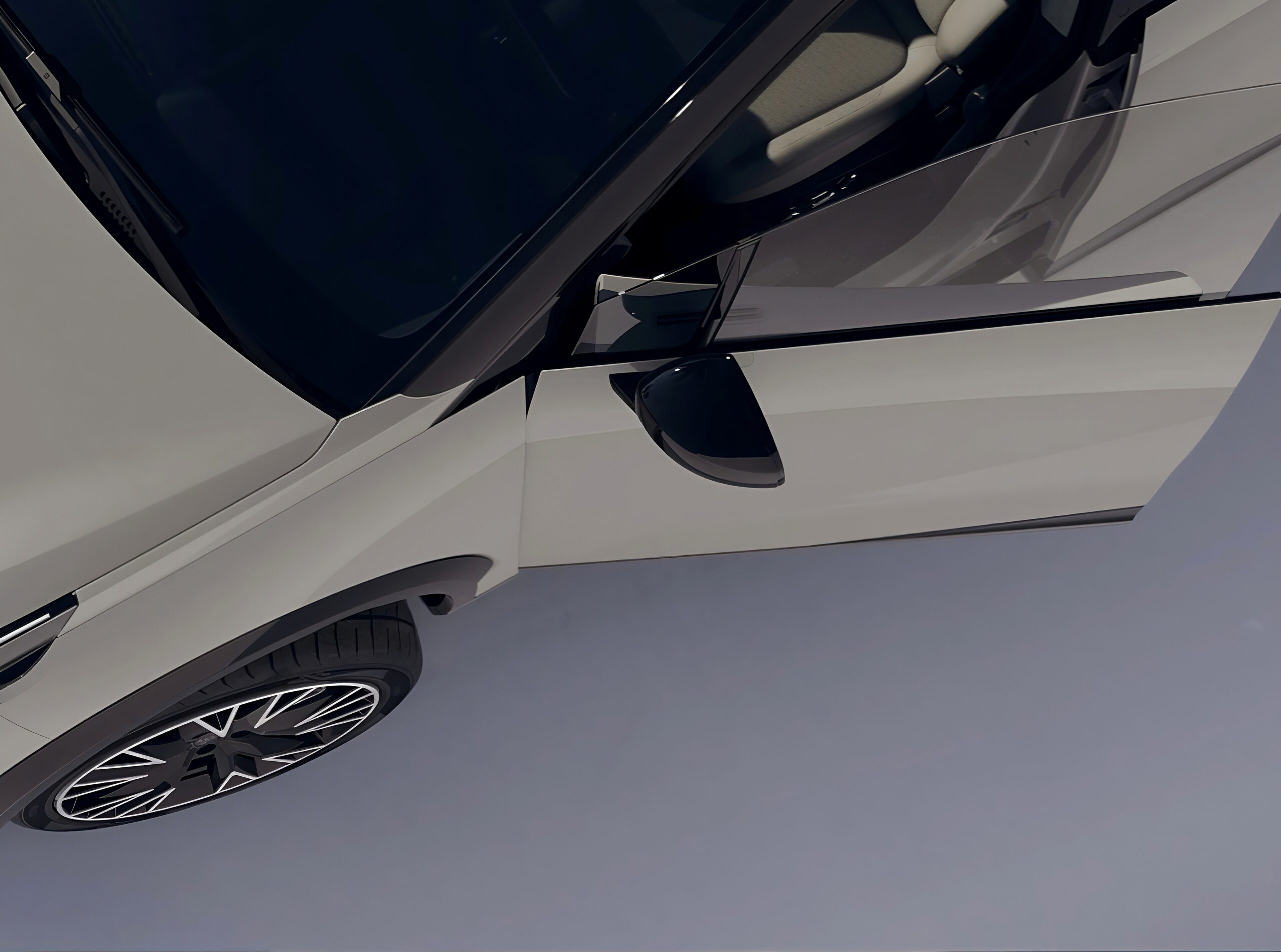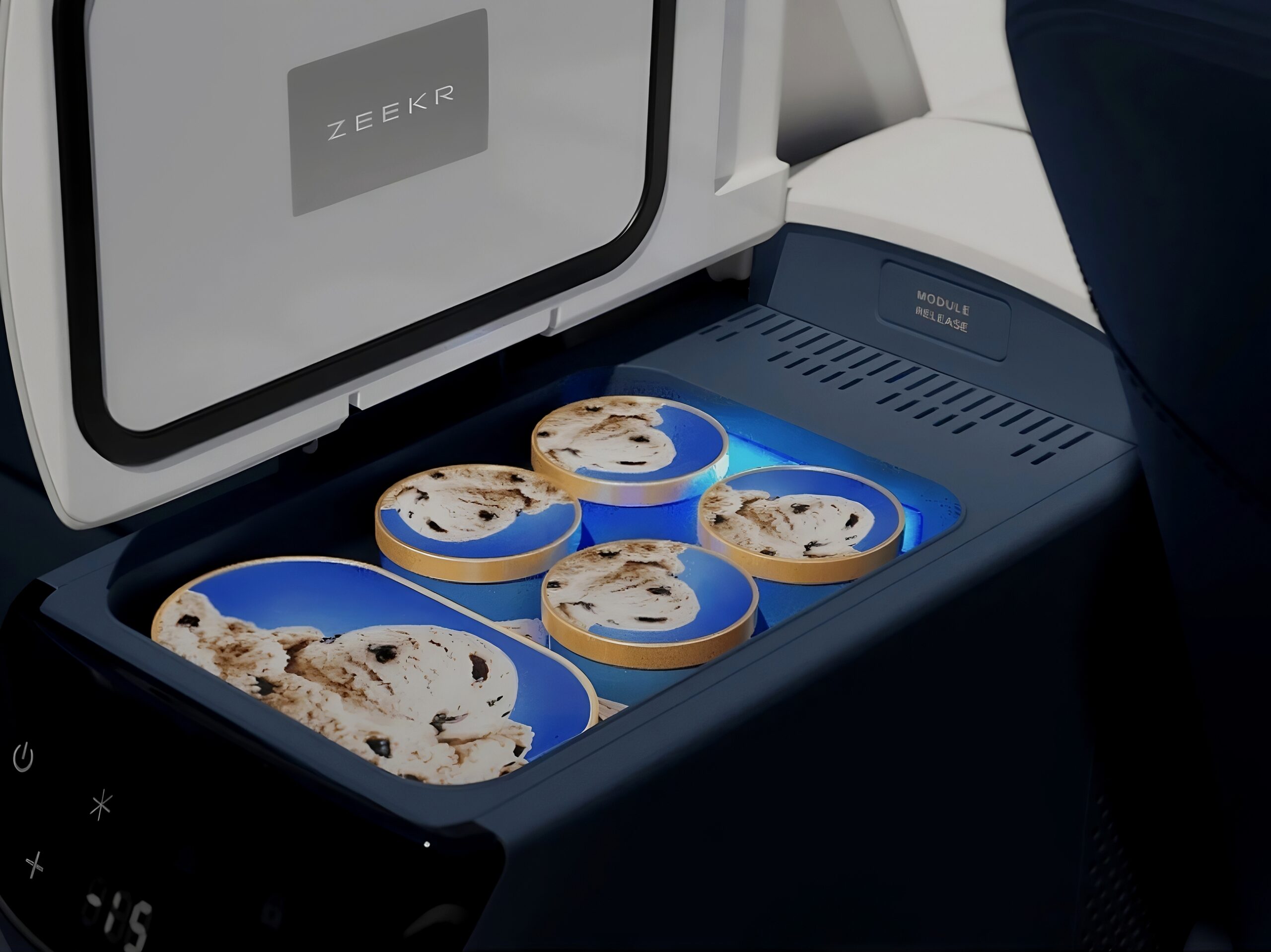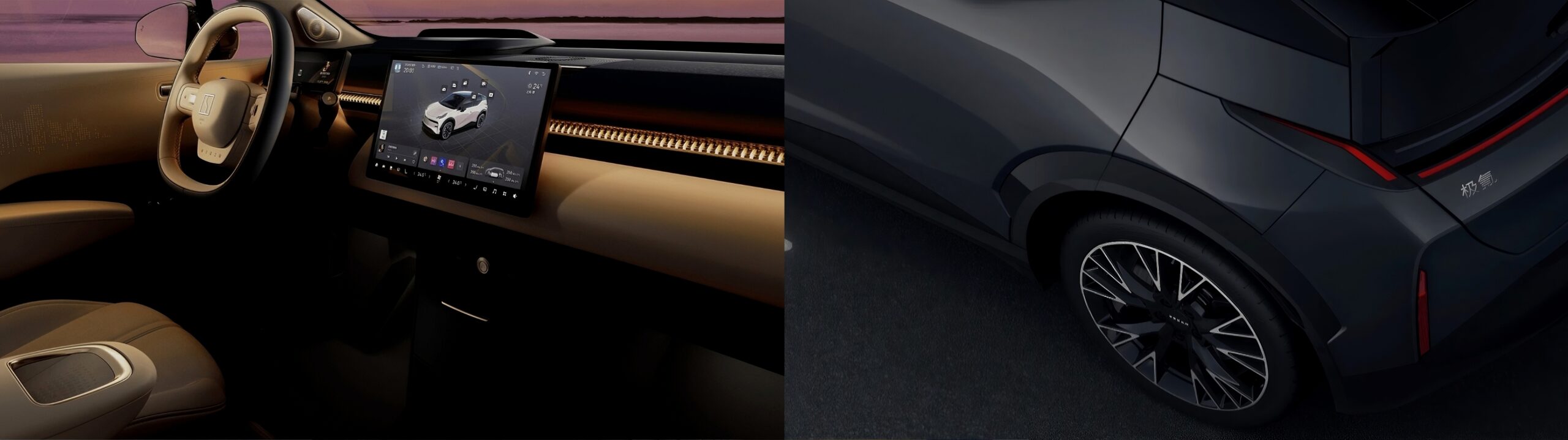 Sleek “Interstellar Crossing” design with frameless doors and hidden charging ports.